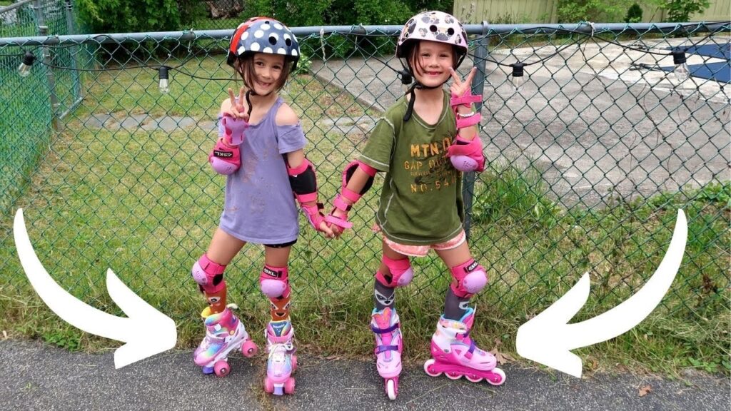 Sizing seems right these are nice yes let’s go try them out ready to go go mia go we’re in the rollerblades look at that fancy footwork so cute i love the bunny They fit great easy for her to get on and off she’s six years old they seem really smooth good wheels nice and sturdy it’s much easier wow so mia likes roller skates better and emmy likes the roller blades better that’s so interesting you like the roller blades better wow let’s go mia
