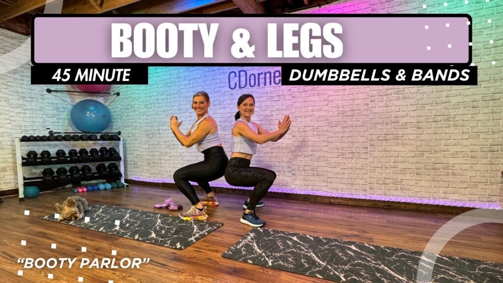 45 Min – At Home – BOOTY & LEG Workout Video – Dumbbells & bands