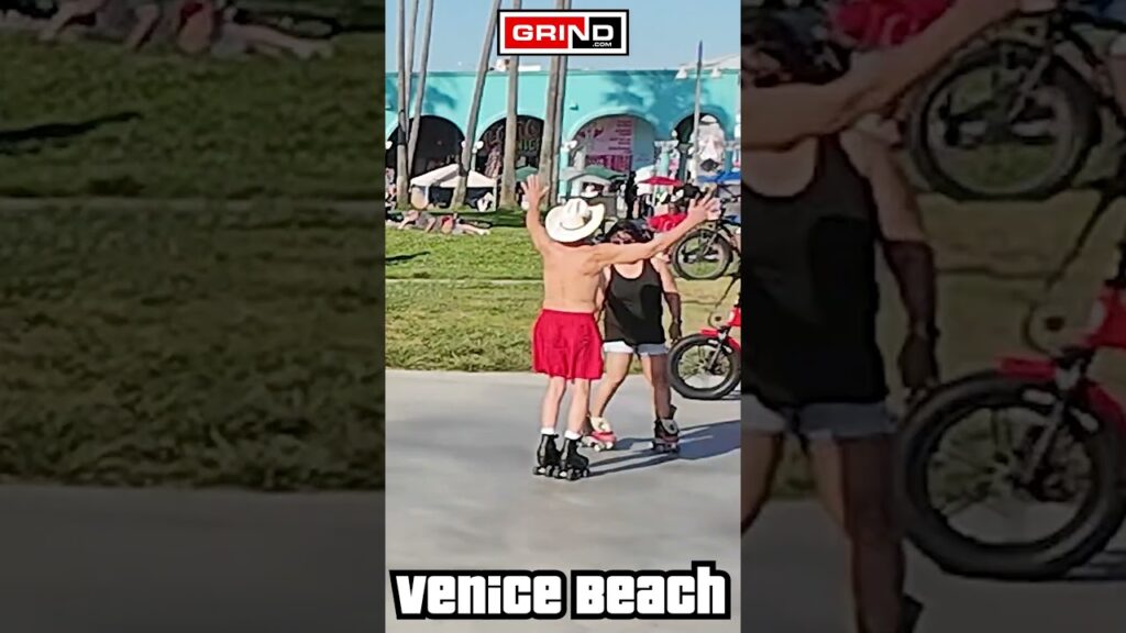 COWBOY STAYING ALIVE at Venice Beach roller disco Plaza. #Grind #grind #veniceskatepark