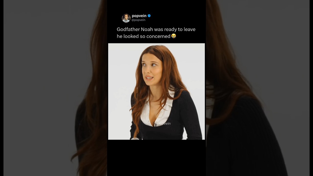 Godfather Noah schnapp looked so concerned hearing Millie bobby Brown baby’s voice 😭